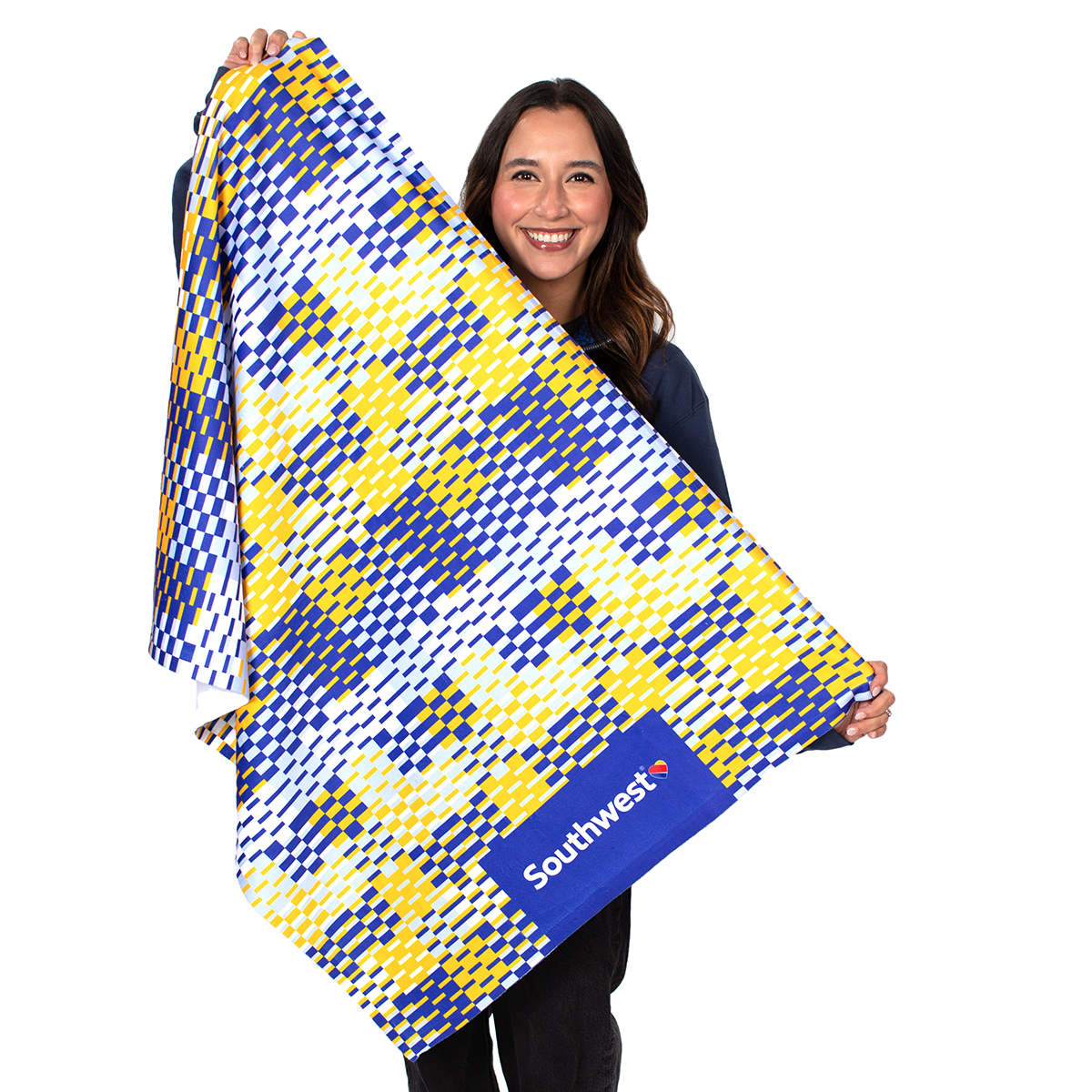 Cozy up with this lightweight brushed fleece blanket featuring a hemmed border for a clean finish.