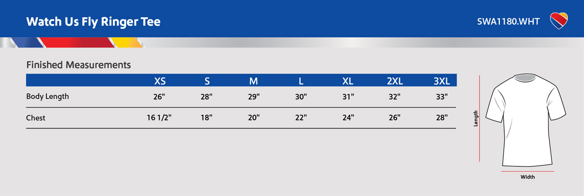 • Southwest Airlines® and Watch Us Fly logo is screenprinted